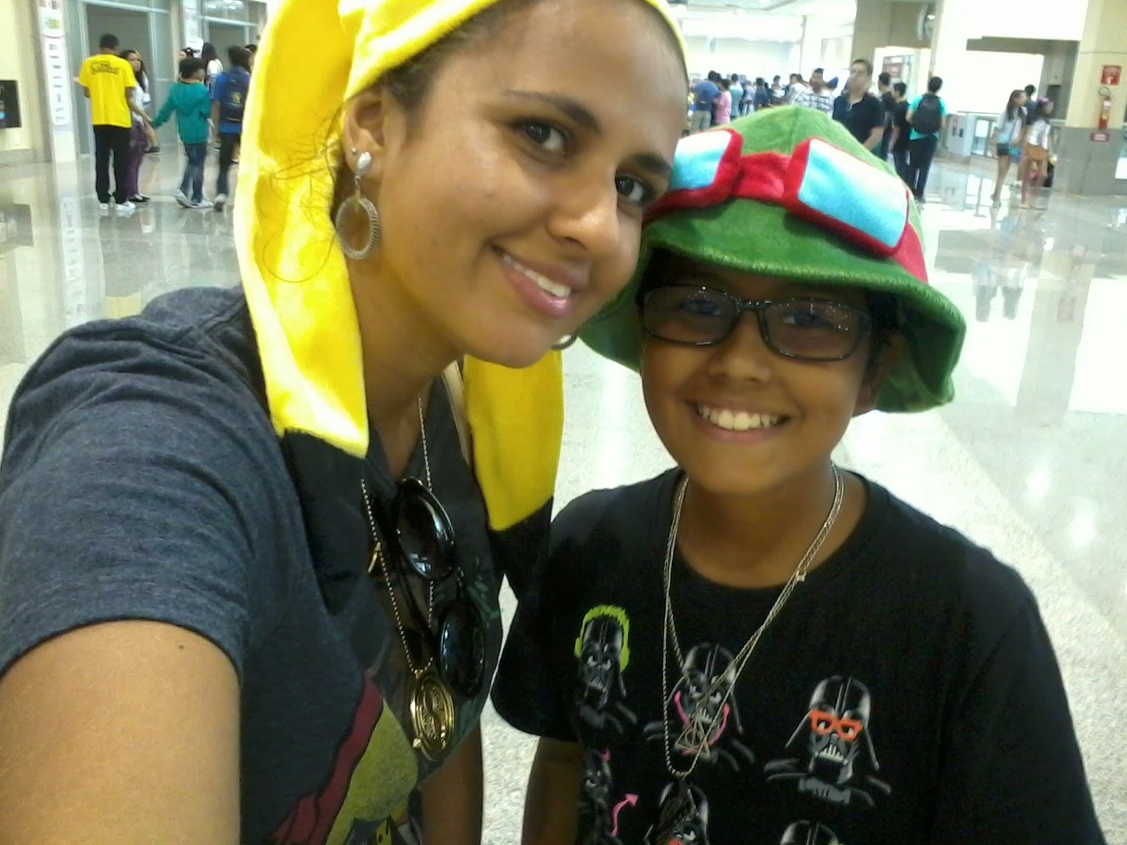 E claro ri e me diverti muito com o pessoal que estava de cosplay, gente eles levam isso muito a sério viu, fiquei chocada com algumas produções. Mas quem de fato se divertiu muito foi o Dudu, que tirou 500 mil fotos com a galera que estava vestido com os personagens do league of legends ou LOL, ele surtou muito e me fez correr atrás de muita gente, mas tinha também muito Pokémon, A hora da aventura, Naruto entre outros.